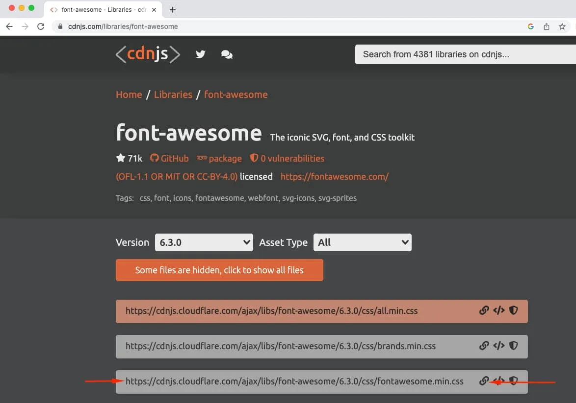 - Localizar la última librería de FontAwesome para usar la más actualizada, la puedes conseguir visitando esta web: https://cdnjs.com/libraries/font-awesome