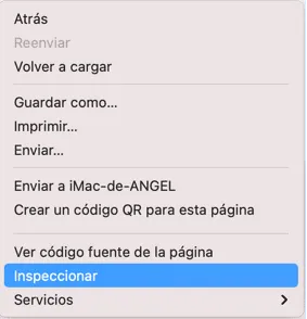 Primero, vete a la página que tiene este problema y abre el Inspector de Chrome haciendo botón derecho y selecciona Inspector.
