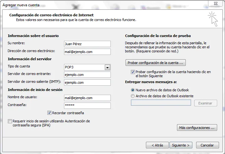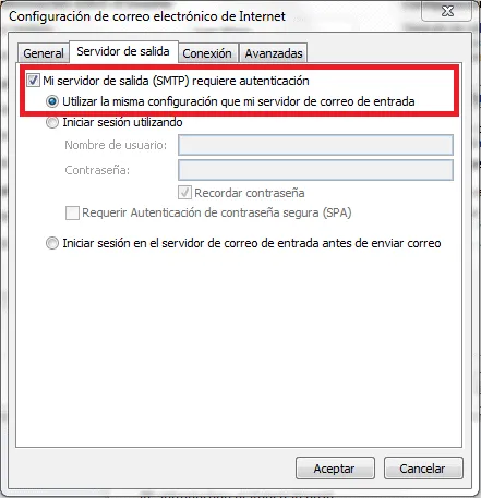 - Requiere acceso mediante Secure Password Authentication (SPA). Deje esta opción deseleccionada.