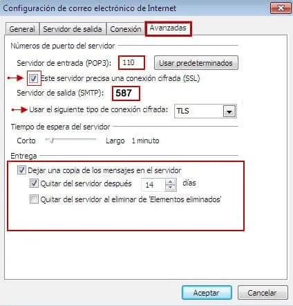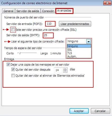 - Servidor de entrada (POP3): 110