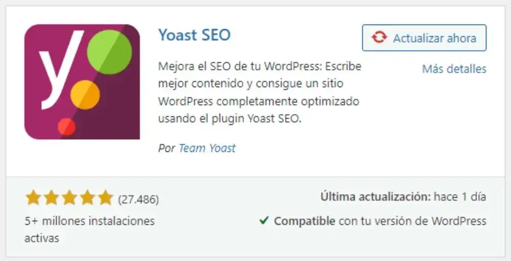 Es el plugin más instalado del mundo de WP con más de 11 millones de instalaciones activas y se encarga de comprobar y hacer que tu sitio web cumpla los más altos estándares técnicos y de optimización para posicionar correctamente.