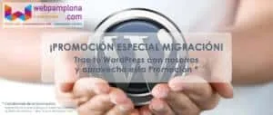 [vc_row][vc_column][vc_column_text css=».vc_custom_1475008074965{padding-top: 30px !important;}»][/vc_column_text][/vc_column][/vc_row][vc_row][vc_column][vc_column_text] Condiciones de la Promoción Migración WordPress Las cuentas alojadas en WEBPAMPLONA.COM y compradas durante el periodo comprendido entre el 01/09/2016 y el