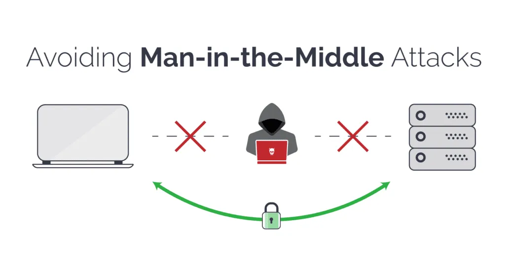 Durante este proceso, un ataque de «man-in-the-middle» ocurre cuando un tercero malintencionado se interpone en la comunicación entre tú y el destinatario, actuando como un intermediario no autorizado.